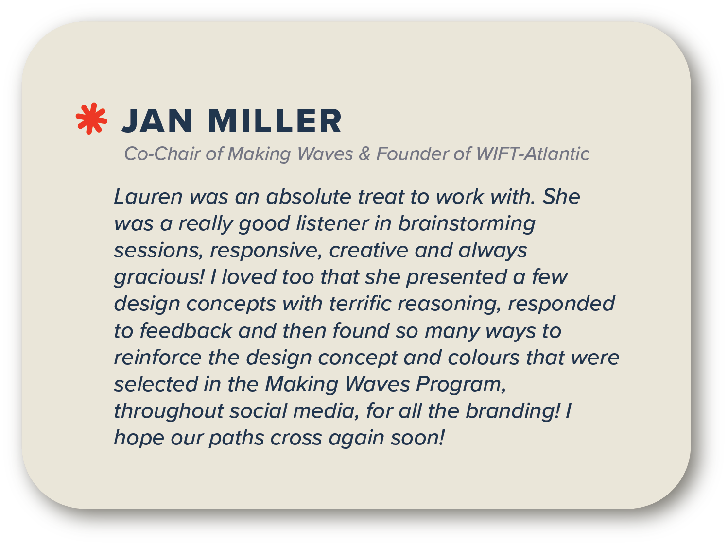 National Library of Public Information (TW), Women in Film & Television Atlantic Canada (CA), Black Box Gallery (US), Griffith Film School (AU), Les Chiens Productions (CA), String Along Productions (CA), FilmPEI (CA), Tivoli Cinema (CA), National Railway Museum (TW), The Design Kids, Charlottetown Zine Festival (CA), The BlacQ Collectives (CA)