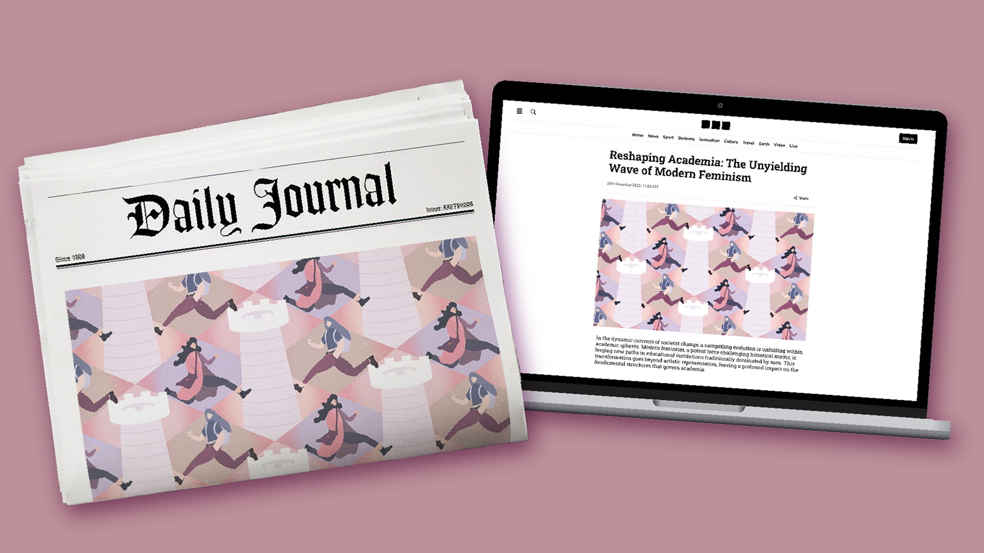 Inspired by the energy and determination of women in academia, I designed this pattern using bold pink hues, custom-designed tiles and elements as a metaphor representing the movement. The design itself is also a tribute to the strength and resilience of women.